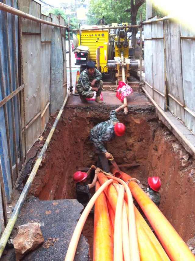 昆明广福路穿越世纪城金源大道24孔电力管定向钻顶管施工