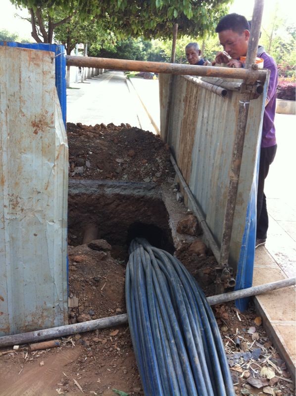 富民县通信管道PE42孔,新大桥段施工现场,工作人